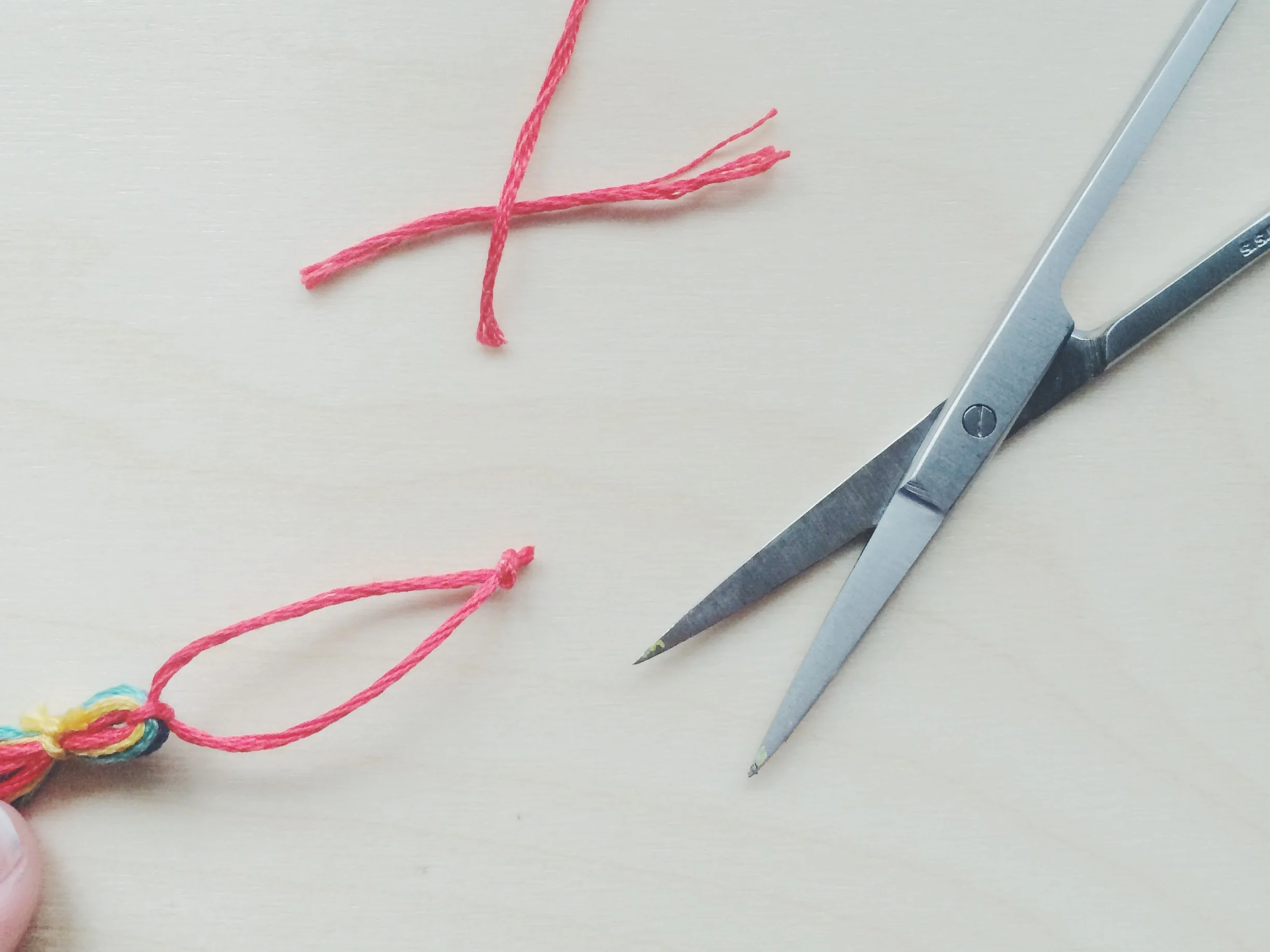 4. After you have formed your loop cut off any extra floss.